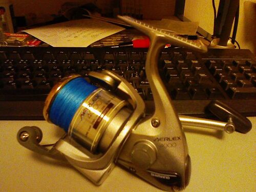 リールの塩抜きがてら、江津湖でナスオモリを投げる(クマくんに見守られながら 親父の9ftシーバスロッドには 4000番 シマノ エアレックス 98年 が装備されており リールがとてもありがたい重さで死にそうになります タックルバランスとかうちの島…
