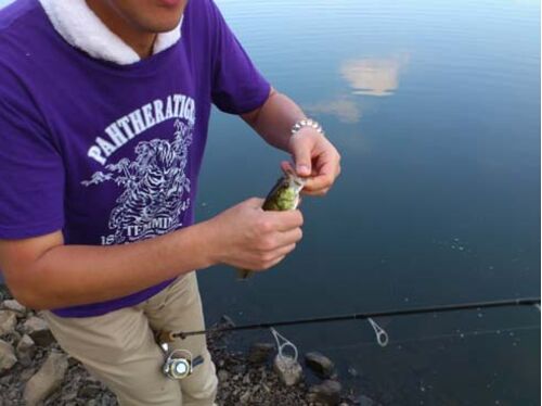 9/13(木曜) H君と立岡池へ。朝から昼。プラらしいゾ 例によってヘラブナの死骸で臭い。ザリガニが腐ってドブみたいな磯臭さ。 ガルプを上回るんじゃないかな。風が吹かないと頭痛がしてくる(@ω@) H君の釣った小バス 920g。拾ったルアーで元取っ…