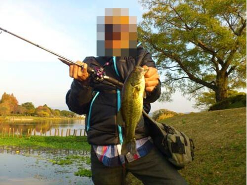 11/25(日曜) 夕方頃江津湖へ。 くまが釣った小バス。カットテールのノーシンカー