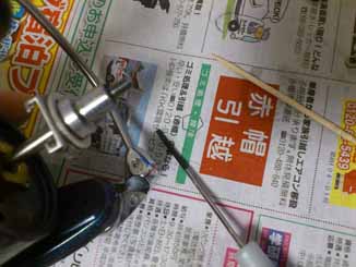 俺の脱脂洗浄のやり方は、桐の先にベアリングを通してからパーツクリーナーのジェット噴射でベアリングを回転させ