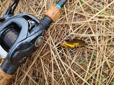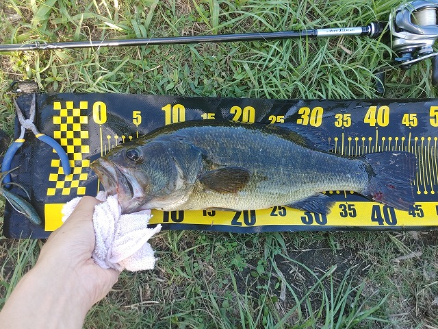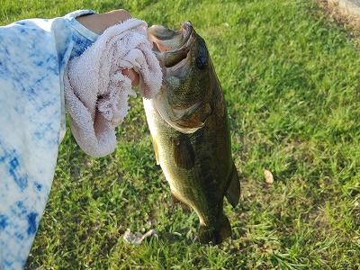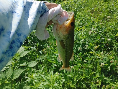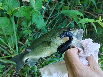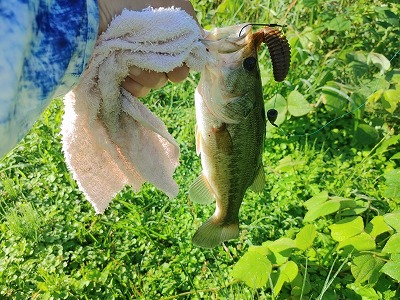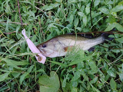 夕方ごろバス釣りへ。草の周囲をカバー打ち。するとバスがヒット