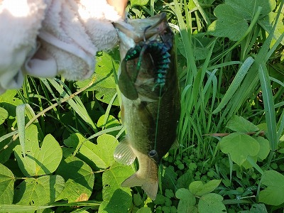 早朝からヒシモタイプの溜池へ。テキサスリグを入れていくが何も起きずに時間だけが過ぎる