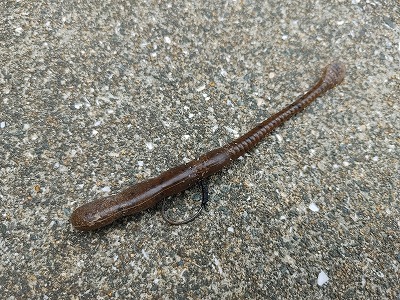 このルアーは扁平なんでフック周りの身切れが起きにくく、スナッグレスネコリグとの相性が良い