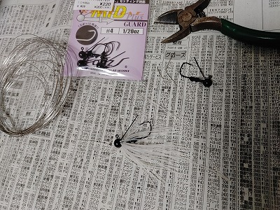 9時頃には納竿し帰宅。フックを伸ばして回収したスモラバの毛をリユースし再生