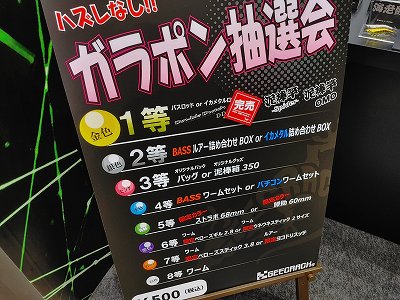 人が落ち着いたところで目に付いたOSPのブースへ。500円でワームのつかみ取りにチャレンジ!