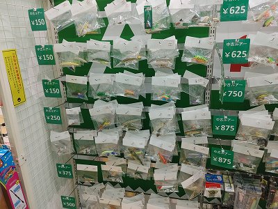 バスルアーは揃いが良い。ノリーズのルアーが欠品なしにそろってる感じだったし