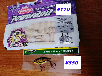 バス用ルアーを車に積んでなくて間に合わせで購入したが