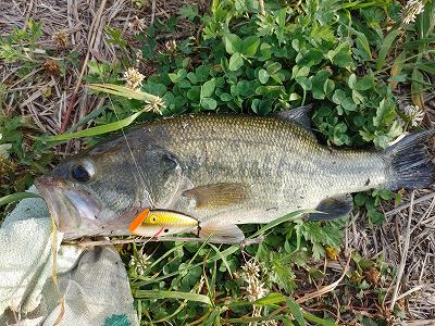 浅い箇所でなくえぐれを攻めるとぼちぼちヒットした。バスは合計4匹釣れた帰宅。